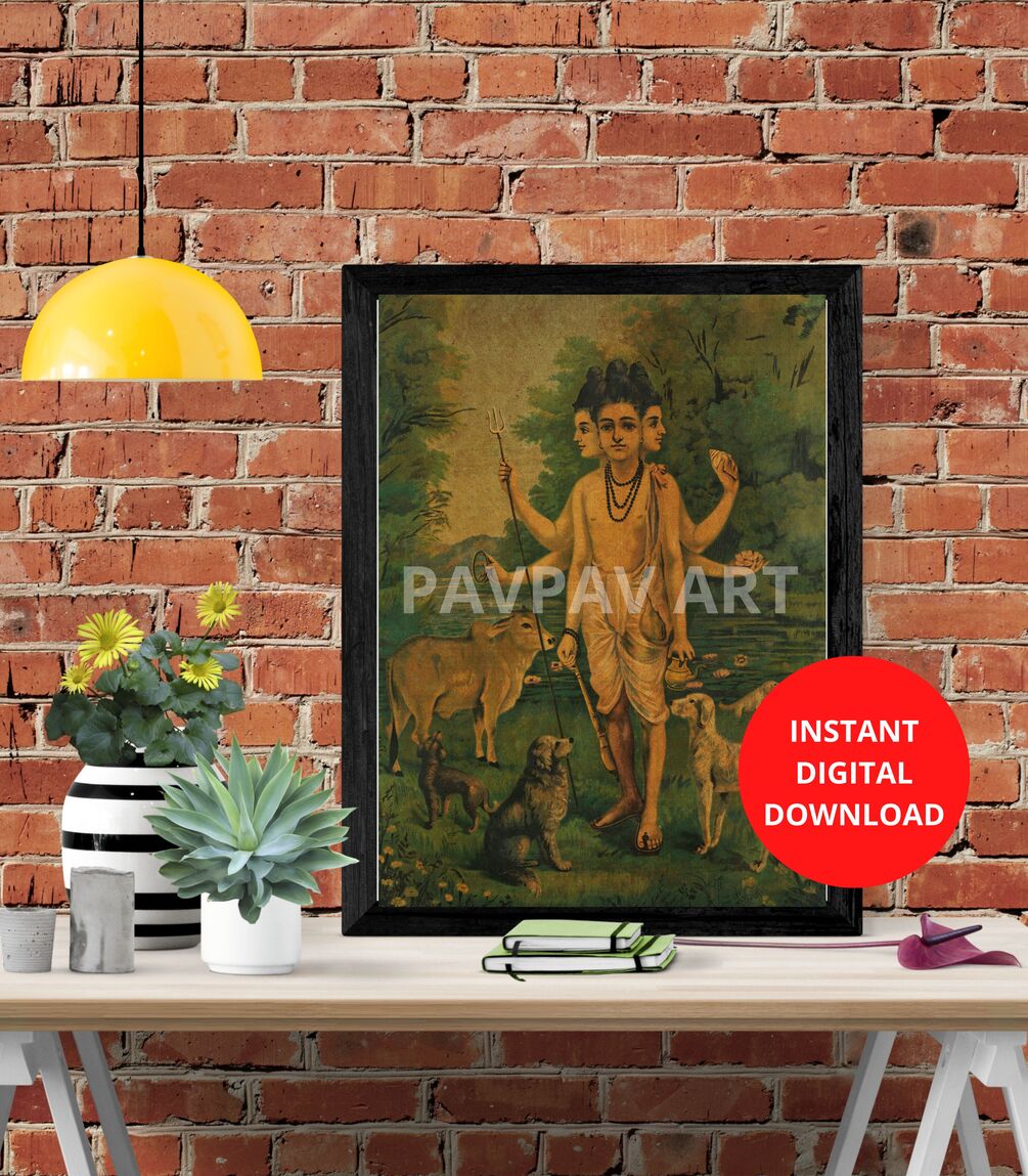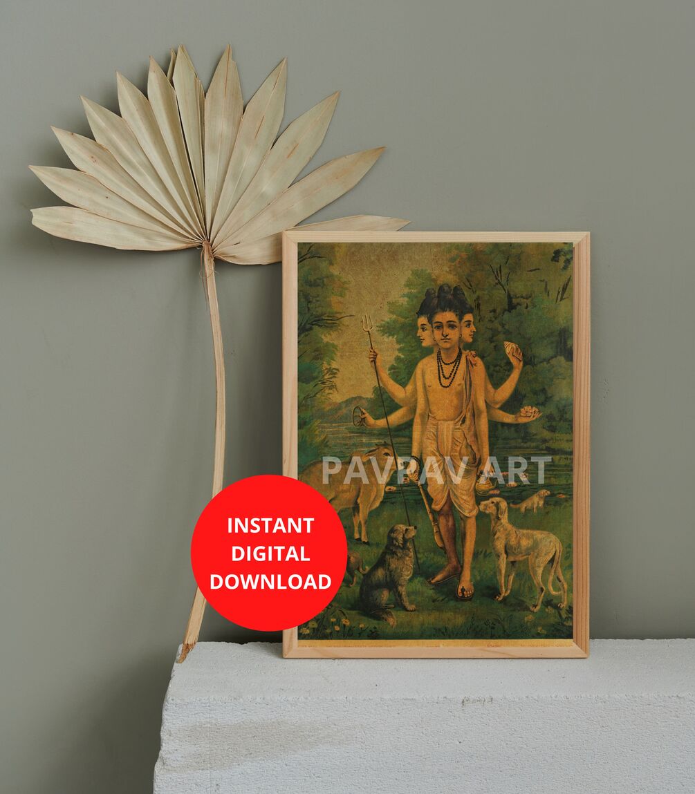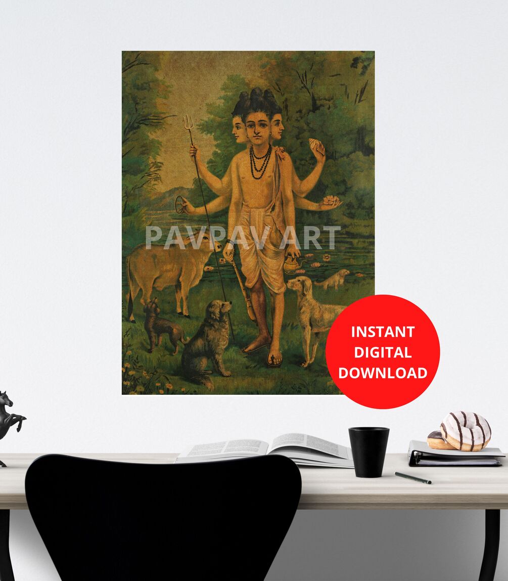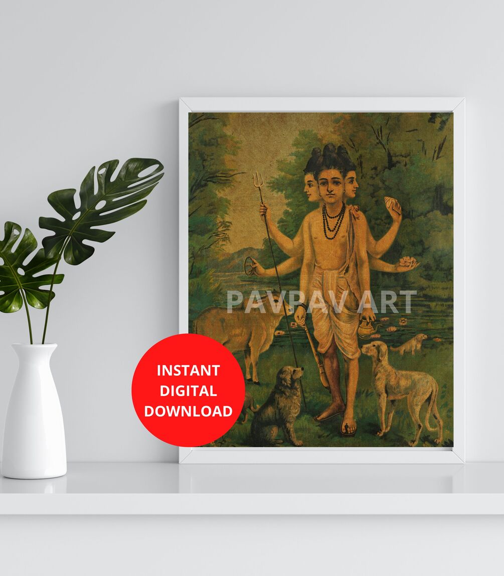Dattatreya Fine Art - Raja Ravi Varma's Painting Vintage Printable Wall Art - Instant Digital Downloads